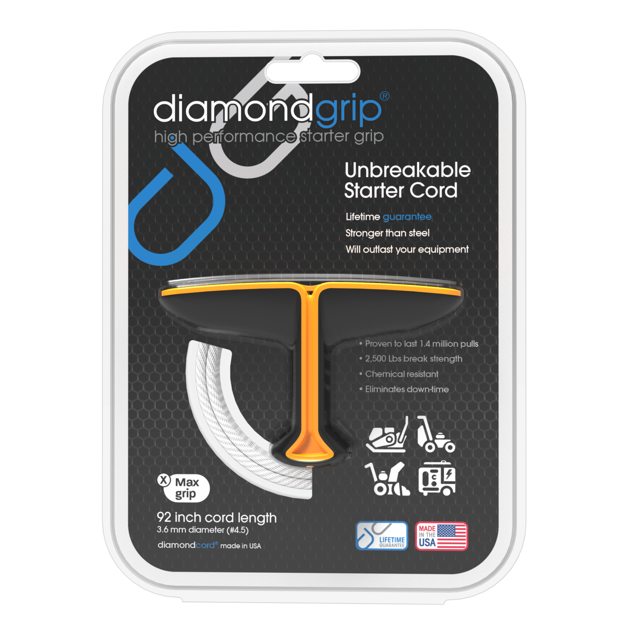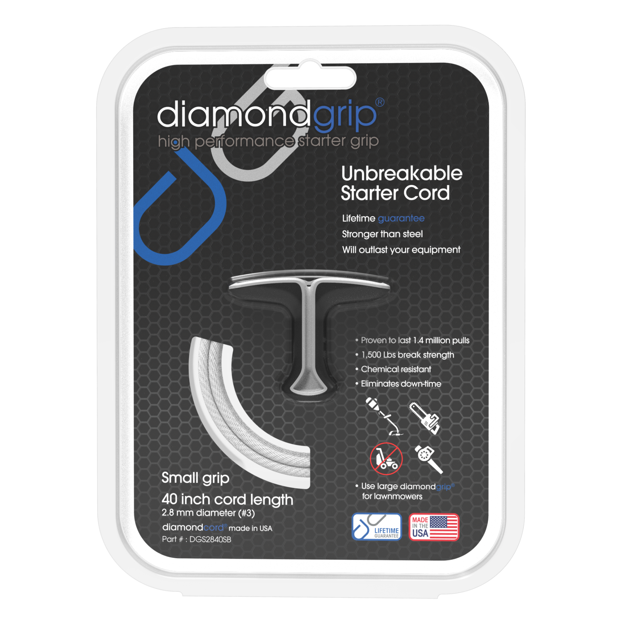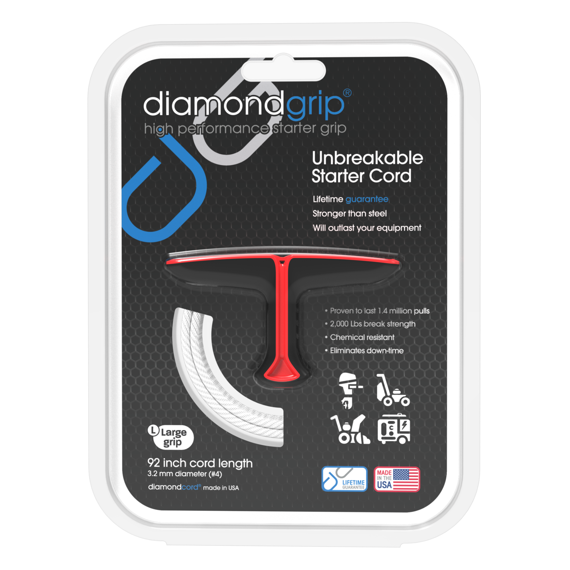 Diamond Performance Ltd. Is proud to introduce diamondgrip™, the strongest and most technologically advanced pull cord handle in the world. Our diamondgrip™ pull cord handles come packaged with diamondcord™ unbreakable pull start cord and are available in two sizes and a variety of colors. The handles are versatile and suitable for any small engine application including lawnmowers, trimmers, and chainsaws. Don’t risk down time and safety with inferior quality products. A diamondgrip™ handle will outlast any piece of equipment you use it with, and it is backed by our lifetime guarantee.